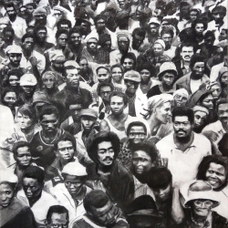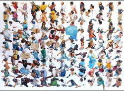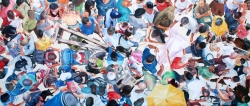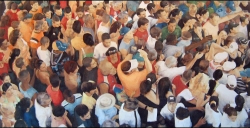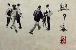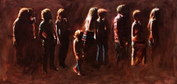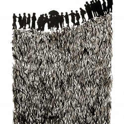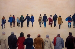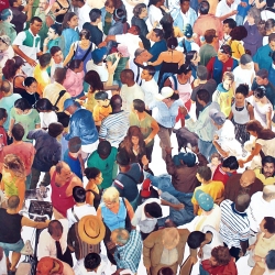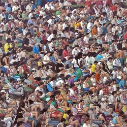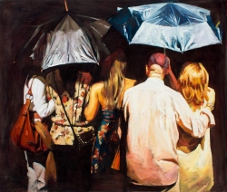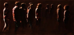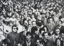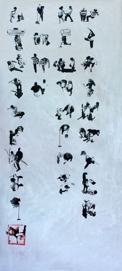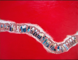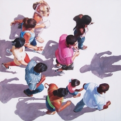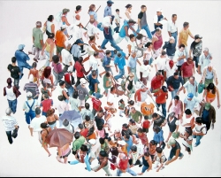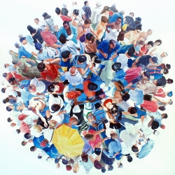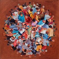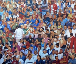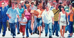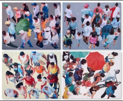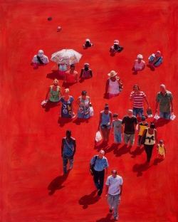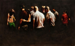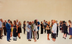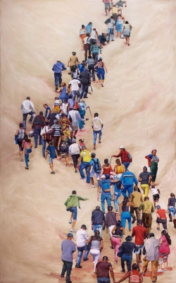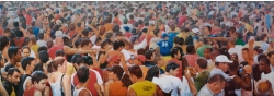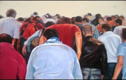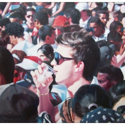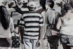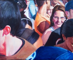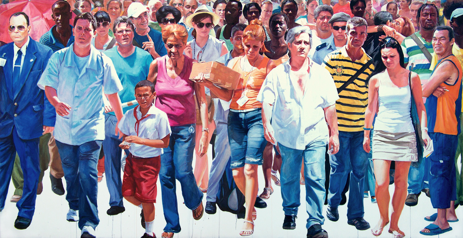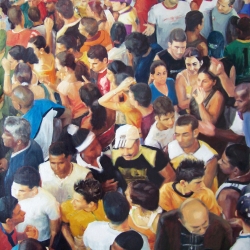 Lo real y lo irreal, lo concreto y lo abstracto son dualidades confusas. Una abstracción no deja por ello de ser un objeto real, y una pintura realista es, vista a corta distancia, una trucada mezcla de materia, pinceladas y textura que la acercan a la abstracción plástica. A distancia estas concreciones procuran, en un primer nivel de observación, una imagen abstracta y provocan en el espectador un acercamiento activo en relación con la obra, que éste descubra gradualmente de qué y de quienes está compuesta la multitud. Como parábola a la relación masa – individualidad y la absorción a la que se ve sometido el individuo cuando confluye en multitud. La masa no se presenta como algo anónimo o impersonal sino como un compuesto, abunda en detalles, ambiciona unos minutos de contemplación. La diversidad de personas se convierte entonces en un punto de atención, reparar en cada individuo, detener la mirada.